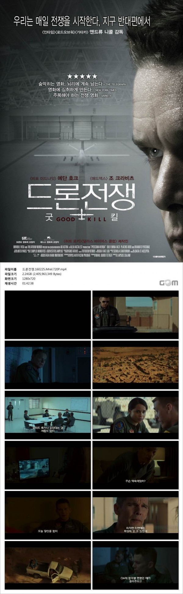 해외영화 | 드론전쟁 굿 킬 2014 페이지 정보 작성자 깡통 작성일16-03-15 11:30 댓글0건 관련링크 http://www.filejo.com/main/popup/bbs_info.php?idx=30294025 413회 연결 본문 우리는 매일 전쟁을 시작한다, 지구 반대편에서. 앤드류 니콜 감독의 영화 <드론전쟁 굿 킬>입니다. 웹하드: 파일조 댓글목록 등록된 댓글이 없습니다.
