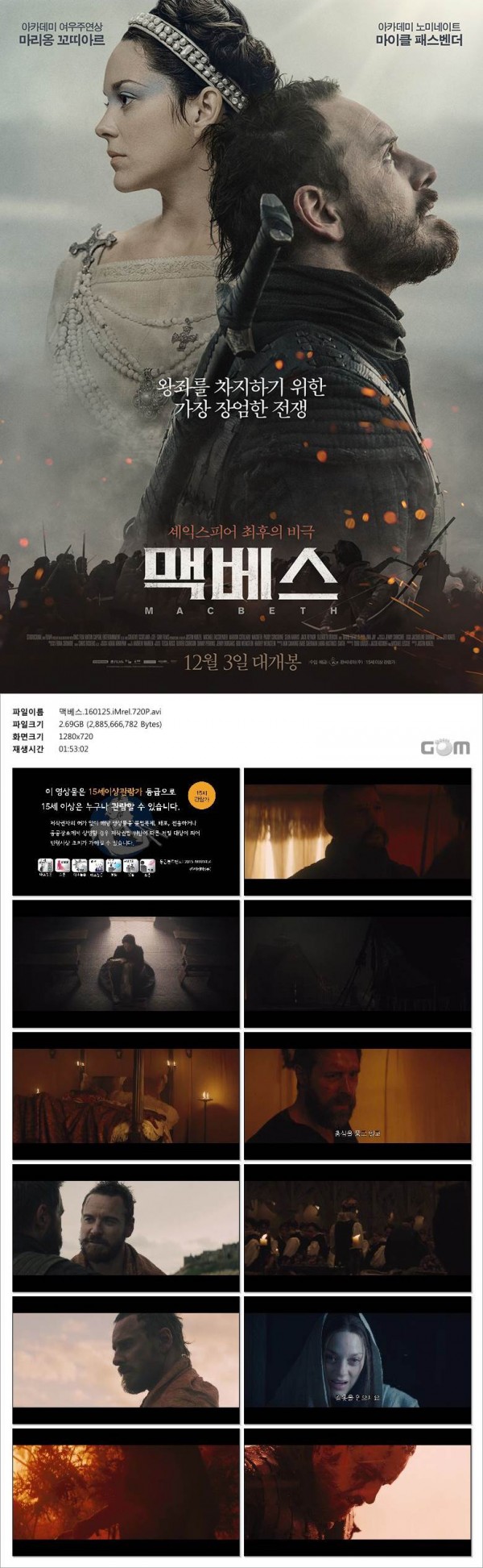해외영화 | 맥베스 2015 페이지 정보 작성자 깡통 작성일16-03-15 11:35 댓글1건 관련링크 http://www.filejo.com/main/popup/bbs_info.php?idx=30028712 415회 연결 본문 "맥베스께 경배하라! 왕이 되실 분이다! 예언이 부른 욕망, 탐욕으로 물든 비극. 영화 <맥베스>입니다. 웹하드: 파일조 댓글목록 레튀튀아님의 댓글 레튀튀아 작성일 16-03-18 12:16 오우!!! 감사합니다~ 오우!!! 감사합니다~