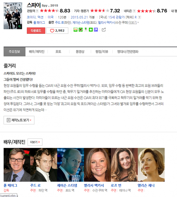 스파이도 모르는 스파이! 그들이 벌써 긴장했다. 주드로, 제이슨 스타뎀 주연의 영화 '스파이'입니다. 웹하드: 베가디스크