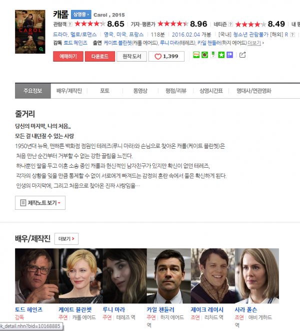 해외영화 | 캐롤 2016 페이지 정보 작성자 blue 작성일16-03-14 11:39 댓글0건 관련링크 http://vegadisk.com/contents/view.php?from_cate=MVO&idx=10856443 438회 연결 본문 오직 그 사람만 보이는 순간이 있다. 모든 걸 내던질 수 있는 영화 '캐롤'입니다. 웹하드: 베가디스크 댓글목록 등록된 댓글이 없습니다.