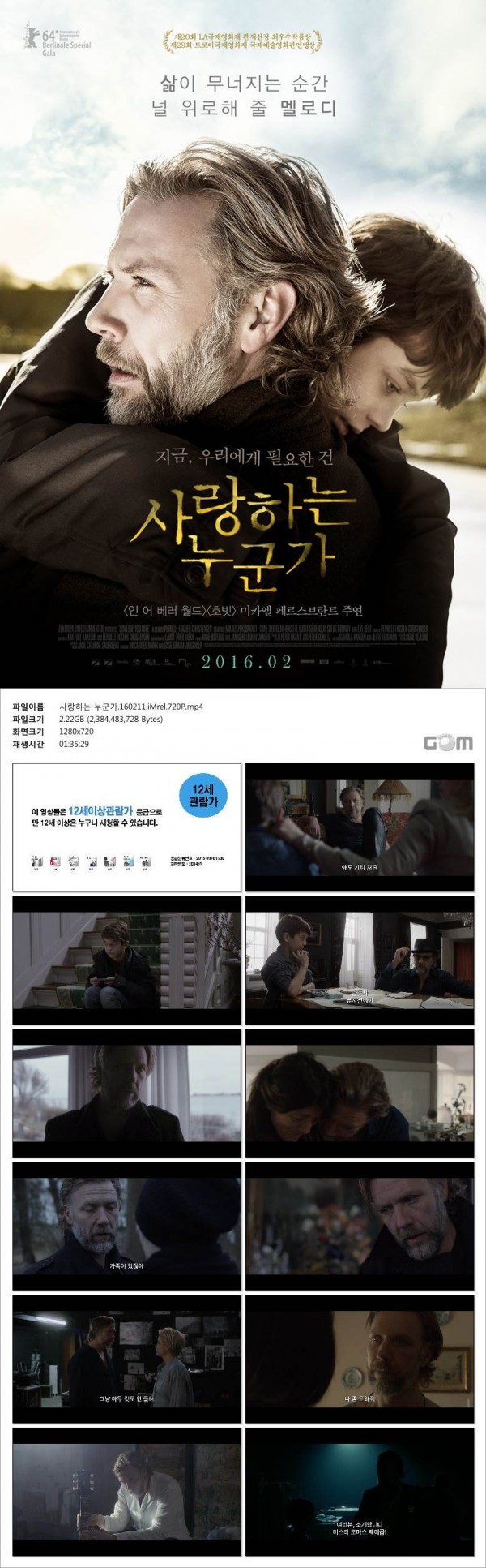 제 20회 LA국제영화제 관객선정 최우수작품상 제 29회 트로이국제영화제 국제예술영화관연맹상 삶이 무너지는 순간 널 위로해 줄 멜로디! 영화 사랑하는 누군가입니다. 웹하드: 파일조