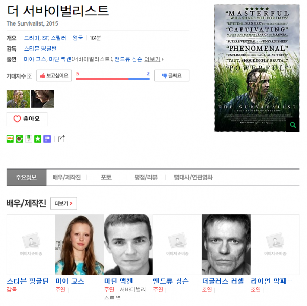 해외영화 | 더 서바이벌리스트 2015 페이지 정보 작성자 blue 작성일16-03-10 12:12 댓글0건 관련링크 http://vegadisk.com/contents/view.php?from_cate=MVO&idx=10743596 521회 연결 본문 드라마, SF, 스릴러 장르의 영화 2015년 개봉작, 더 서바이벌리스트입니다. 웹하드: 베가디스크 댓글목록 등록된 댓글이 없습니다.