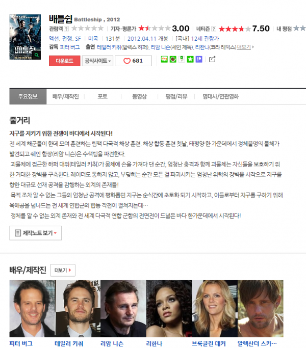 해외영화 | 배틀쉽 2012 페이지 정보 작성자 마당발 작성일16-03-08 09:54 댓글0건 관련링크 http://www.filedok.com/main/popup/bbs_info.php?idx=25775396 527회 연결 본문 2012년도 개봉한 영화 배틀쉽입니다. 테일러 키취, 리하나, 리암 리슨이 주연을 맡았습니다. 웹하드: 파일독 댓글목록 등록된 댓글이 없습니다.