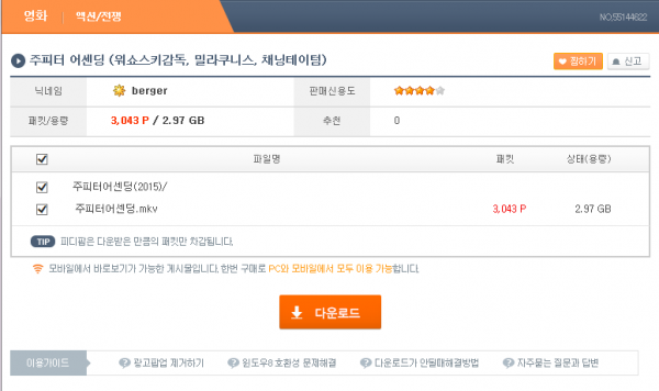 해외영화 | 쥬피터 어센딩 2015 페이지 정보 작성자 마당발 작성일16-03-04 15:32 댓글0건 관련링크 http://bbs.pdpop.com/board_re.php?mode=view&code=F_02_06&contentid=&sz… 757회 연결 본문 밀라 쿠니스 주연의 액션영화 주피터 어센딩입니다. 2015년에 개봉/12세 관람가 웹하드: 피디팝 댓글목록 등록된 댓글이 없습니다.