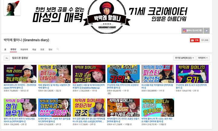 관련기사 : 중앙일보 · "막 찍어 발러"..메이크업 영상의 새 장을 연 할머니 유튜버